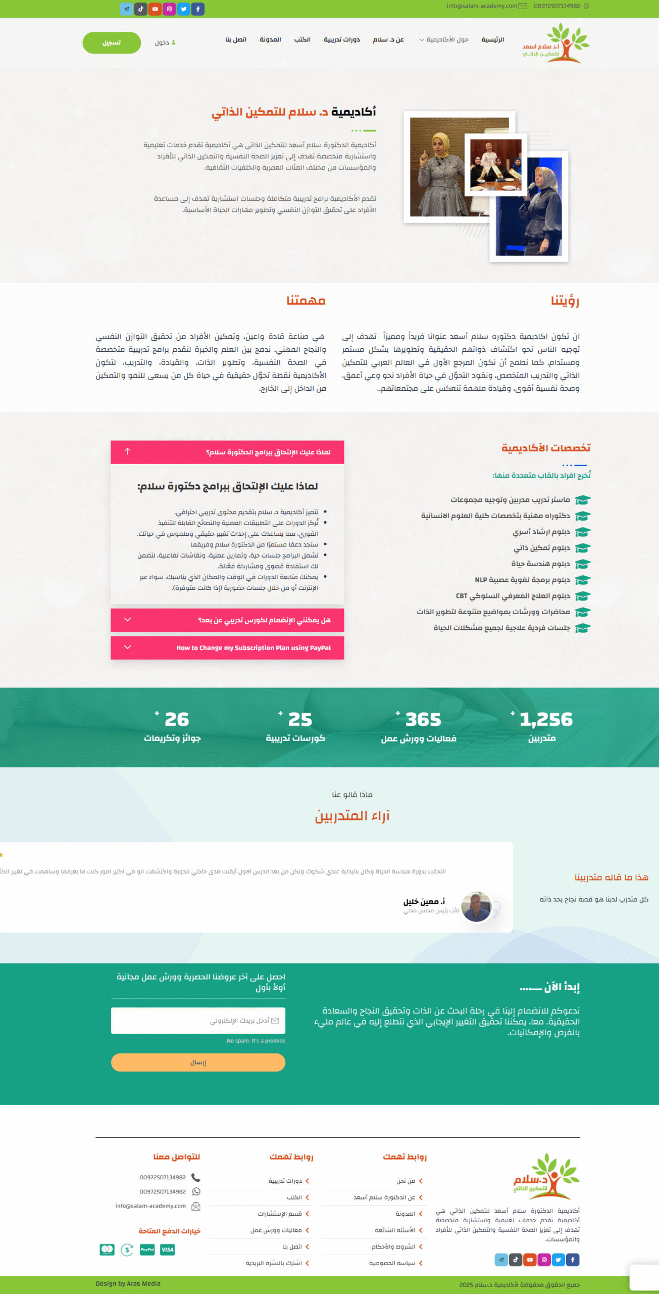 تم بناء موقع إلكتروني متكامل من حيث التصميم والمحتوى بشكل يتلائم مع سياسات محركات البحث وسياسة المستخدمة والمنصات الإعلانية تم بناء هوية بصرية تجارية متكاملة من حيث لوجو ومغلفات وكل ما يلزم لإتمام العلامة التجارية إدارة متكاملة لمنافذ الشركة على شبكة الانترنت من محتوى ونشر وادارة حملات إعلانية بالإضافة لمتطلبات فريق العمل من تصميم ومتابعةالخدمات والأعمال المقدمة من Aras Media: